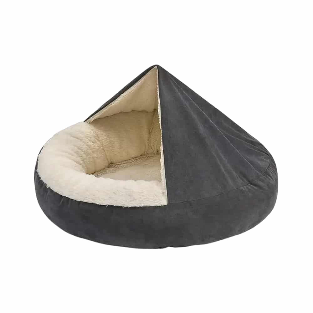 What sets the PawdyRest apart is its plush velvet construction combined with premium polyester fibre fill that creates an enveloping cocoon effect. The hooded cave cuddler design mimics the security of a den, triggering natural calming responses in pets who struggle with separation anxiety, storm phobia, or general nervousness. Available in 4 versatile sizes (XS, S, M, L), it accommodates breeds from tiny Chihuahuas to medium-sized Cocker Spaniels with perfect proportions.