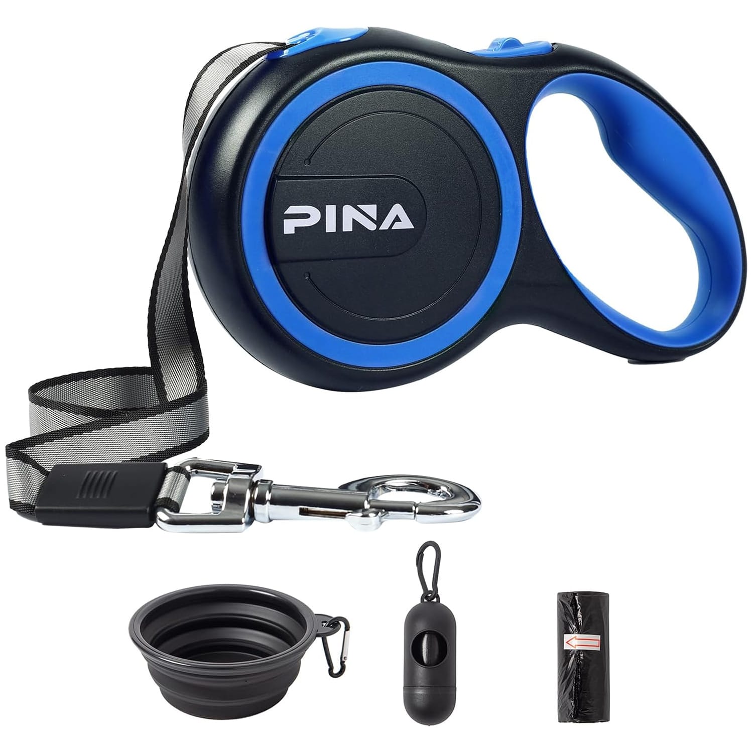 PINA Retractable Dog Leash offers versatility with three size options (10ft, 16ft, 26ft) accommodating dogs from 33 to 110 lbs. This comprehensive range ensures suitable options for various breed sizes, from small terriers to large retrievers.